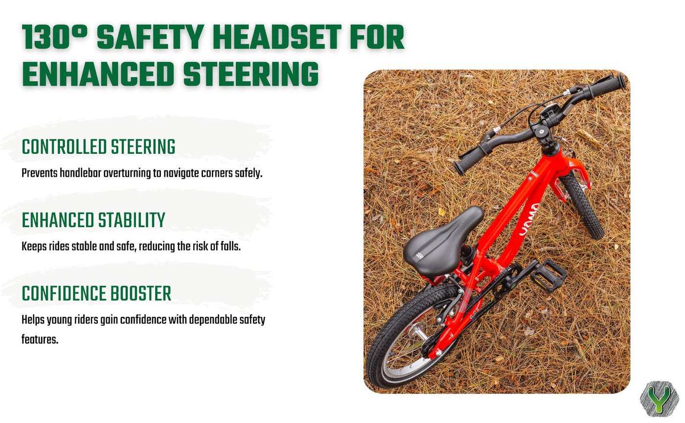 A fully enclosed chain and 130° safety headset offer maximum safety when pedalling and steering.