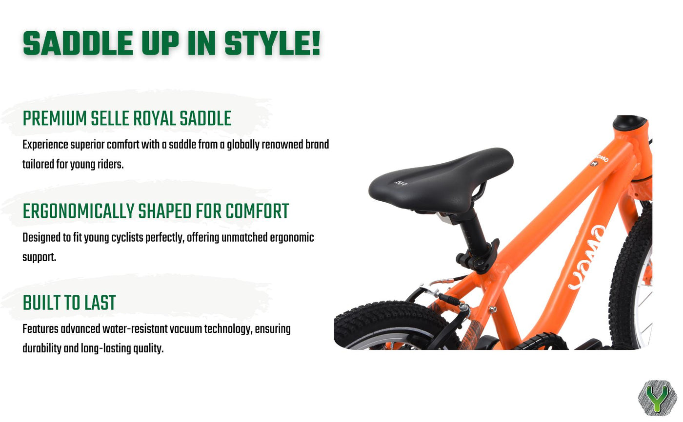 The YOMO 14 is a lightweight, high-demand pedal bike designed for young riders.  With child-friendly geometry and eye-catching colours, it's an ideal choice for kids transitioning to pedal bikes.