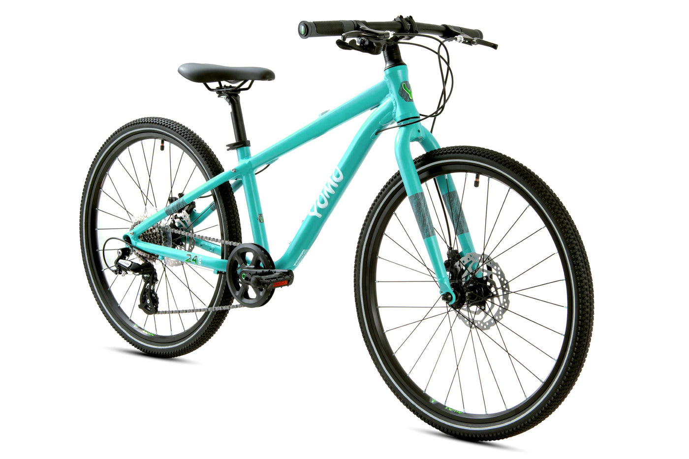 {"id":9100097782012,"title":"YOMO 24 turquoise","handle":"yomo-24-turquoise","description":"\u003cdiv style=\"text-align: start;\"\u003e      \u003cimg src=\"https:\/\/cdn.shopify.com\/s\/files\/1\/0224\/5142\/1256\/files\/Yomo_1_0d7e6f6c-1c61-4304-9d3b-a8bce2b5e2f1_100x100.png?v=1756541356\" alt=\"Yomo brand logo\" style=\"margin-bottom: 16px; float: none;\"\u003e\n\u003c\/div\u003e\n\u003cul\u003e\n\u003cli\u003e\n\u003cstrong\u003eAge:\u003c\/strong\u003e  8 - 11 yrs\u003c\/li\u003e\n\u003cli\u003e\n\u003cstrong\u003eWheel Size:\u003c\/strong\u003e  24\"\u003c\/li\u003e\n\u003cli\u003e\n\u003cstrong\u003eFrame Size:\u003c\/strong\u003e  12\"\u003c\/li\u003e\n\u003cli\u003e\n\u003cstrong\u003eInside Leg:\u003c\/strong\u003e  59 - 69cm\u003c\/li\u003e\n\u003cli\u003e\n\u003cstrong\u003eRider Height:\u003c\/strong\u003e  130 - 150cm\u003c\/li\u003e\n\u003cli\u003e\n\u003cstrong\u003eColour:\u003c\/strong\u003e  Turquoise (satin)\u003c\/li\u003e\n\u003cli\u003e\n\u003cstrong\u003eFrame Material:\u003c\/strong\u003e  Aluminium\u003c\/li\u003e\n\u003cli\u003e\n\u003cstrong\u003eNumber of Gears:\u003c\/strong\u003e  8\u003c\/li\u003e\n\u003cli\u003e\n\u003cstrong\u003eBrake Type:\u003c\/strong\u003e  Mechanical Disc\u003c\/li\u003e\n\u003cli\u003e\n\u003cstrong\u003eWheels:\u003c\/strong\u003e  Full alloy QR\u003c\/li\u003e\n\u003cli\u003e\n\u003cstrong\u003eTyres:\u003c\/strong\u003e  24\" x 1.50\"\u003c\/li\u003e\n\u003cli\u003e\n\u003cstrong\u003eWeight:\u003c\/strong\u003e  9.40kg (without pedals); 9.68kg (with pedals)\u003c\/li\u003e\n\u003c\/ul\u003e\n\u003cp\u003e\u003cstrong style=\"color: green;\"\u003eFREE YOMO helmet with every YOMO bike!\u003c\/strong\u003e\u003c\/p\u003e\n\u003c!-- TABS --\u003e\n\u003ch5\u003eDescription\u003c\/h5\u003e\n\u003cp\u003e\u003cbr\u003e\u003c\/p\u003e\n\u003cp\u003eThe YOMO 24 is where passion meets performance.  Built with an ultra-lightweight frame for agility and comfort, this bike is ideal for young riders looking to push boundaries.\u003cbr\u003e\u003cbr\u003eIt comes equipped with easy-to-use Shimano 8-speed gears and powerful Tektro mechanical disc brakes.\u003cbr\u003e\u003cbr\u003eWhether it's a casual ride or a thrilling all-day adventure, the YOMO 24 has got you covered.  Gear up, brake confidently, and let the '\u003cem\u003eFun on Wheels\u003c\/em\u003e' continue.\u003cbr\u003e\u003cbr\u003eThe frame is constructed from 6061 T6 heat-treated, triple-butted aluminium tubes.  It features internal cable routing, child-specific geometry, and a low centre of gravity to ensure easy manoeuvrability, enhanced stability, and intuitive balancing for younger riders.\u003cbr\u003e\u003cbr\u003eThe YOMO 24 comes equipped with a full Shimano 8-speed gear system, including a Shimano Altus rear derailleur, a Shimano RapidFire Plus shifter, and a Shimano wide-ratio 8-speed Hyperglide cassette.\u003cbr\u003e\u003cbr\u003eChild-specific Tektro alloy brake levers, matched to Tektro mechanical disc brakes with automatic caliper centering, ensure a confident stop with minimum effort.\u003cbr\u003e\u003cbr\u003eA water-resistant, ergonomically designed Selle Royal saddle, combined with a quick-release seat post, allows for effortless adjustment of saddle height and comfort.\u003cbr\u003e\u003cbr\u003eOptimised Q-factor ensures an ergonomic leg position, reducing strain on younger hips and knees, for a more comfortable ride.\u003cbr\u003e\u003cbr\u003eFinally, a high-quality wheelset includes double-wall alloy rims with Shimano quick-release disc hubs, Kenda Small Block Eight tyres with reflective sidewalls, and black spokes.\u003cbr\u003e\u003cbr\u003eYOMO - Fun On Wheels.\u003c\/p\u003e\n\u003cp\u003e\u003cbr\u003e\u003c\/p\u003e\n\u003cstyle\u003e.embedtool {position: relative;height: 0;padding-top: 56%;overflow: hidden;max-width: 100%;} .embedtool iframe, .embedtool object, .embedtool embed { position: absolute; top: 0; left: 0; width: 100%; height: 100%; } .embedtool .fluid-vids {position: initial !important}\u003c\/style\u003e\n\u003cdiv class=\"embedtool\"\u003e\u003ciframe src=\"https:\/\/www.youtube.com\/embed\/bixVhUlej4E\"\u003e\u003c\/iframe\u003e\u003c\/div\u003e\n\u003cp\u003e\u003cbr\u003e\u003c\/p\u003e\n\u003ch5\u003eSpecification\u003c\/h5\u003e\n\u003cul\u003e\n\u003cli\u003e\n\u003cstrong\u003eFrame:\u003c\/strong\u003e Aluminium alloy \/ T6 6061 series heat-treated \/ Triple-butted \/ Internal cable routing\u003c\/li\u003e\n\u003cli\u003e\n\u003cstrong\u003eFork:\u003c\/strong\u003e Aluminium alloy \/ T6 6061 series heat-treated \/ Straight \u0026amp; tapered leg \/ 1 1\/8\" steerer\u003c\/li\u003e\n\u003cli\u003e\n\u003cstrong\u003eHeadset:\u003c\/strong\u003e Neco alloy A-head \/ Semi-integrated threadless\u003c\/li\u003e\n\u003cli\u003e\n\u003cstrong\u003eShifter:\u003c\/strong\u003e Shimano RapidFire Plus \/ 1x8 speed\u003c\/li\u003e\n\u003cli\u003e\n\u003cstrong\u003eRear Derailleur:\u003c\/strong\u003e Shimano Altus RD-M310\u003c\/li\u003e\n\u003cli\u003e\n\u003cstrong\u003eFreewheel:\u003c\/strong\u003e Shimano HyperGlide cassette \/ 11-32T \/ 8 speed\u003c\/li\u003e\n\u003cli\u003e\n\u003cstrong\u003eChain:\u003c\/strong\u003e KMC Z-8.1\u003c\/li\u003e\n\u003cli\u003e\n\u003cstrong\u003eChainset:\u003c\/strong\u003e Single forged alloy 32T chainring \/ Forged alloy 140mm crank arms \/ Narrow Q-factor\u003c\/li\u003e\n\u003cli\u003e\n\u003cstrong\u003eChainguard: \u003c\/strong\u003e Double-sided\u003c\/li\u003e\n\u003cli\u003e\n\u003cstrong\u003ePedals:\u003c\/strong\u003e Resin junior platform\u003c\/li\u003e\n\u003cli\u003e\n\u003cstrong\u003eBottom Bracket:\u003c\/strong\u003e 3 piece crank system \/ Thun Goal \/ Square taper \/ Sealed cartridge bearings\u003c\/li\u003e\n\u003cli\u003e\n\u003cstrong\u003eRims:\u003c\/strong\u003e Double-wall alloy \/ CNC braking surfaces \/ 28H\u003c\/li\u003e\n\u003cli\u003e\n\u003cstrong\u003eFront Hub:\u003c\/strong\u003e Alloy \/ Quick-release \/ Sealed bearings \/ 28H\u