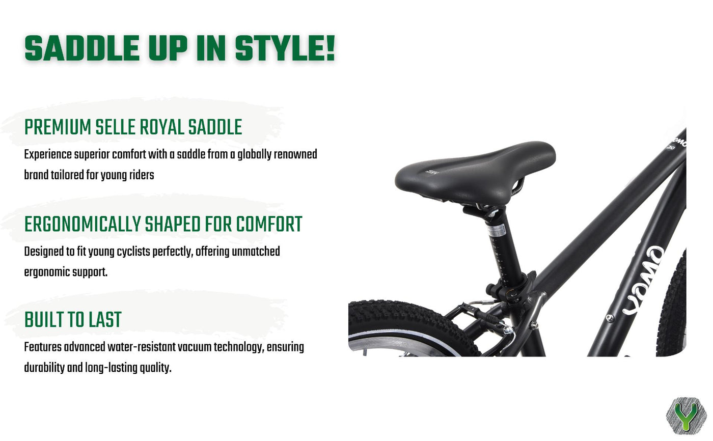 Designed with growing children in mind, the YOMO 20 has an ultra-lightweight frame and Shimano 7-speed gears that adapt to their pace.