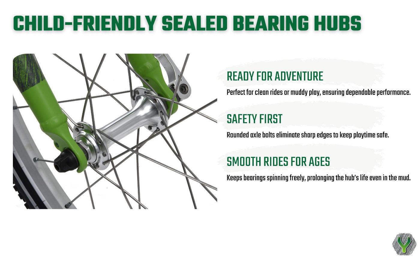 - Front Hub: Alloy / Quick-release / Sealed bearings / 20H