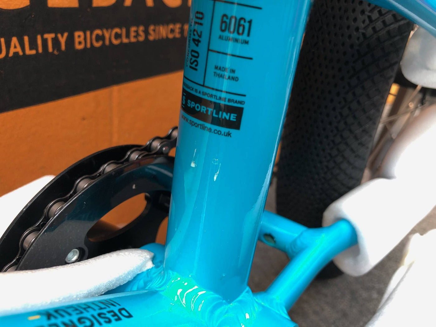 Utilising alloy rims with alloy hubs, stainless steel spokes and fast-rolling Vee Speedster tyres, the Dimension 16 has an all-alloy parts mix to ensure its weight remains very low.