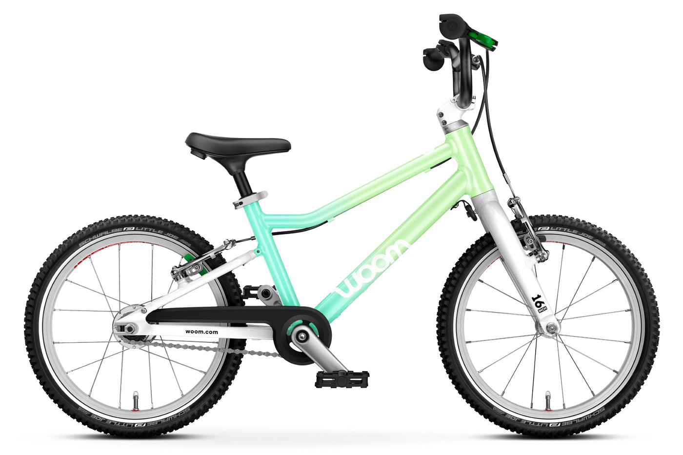 The Woom GO 3 AUTOMAGIC is a superlight bike with 16″ wheels, a safety-conscious design and automatic two-gear shifting for kids aged 4 years and up.